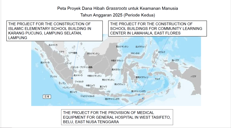 Pada tanggal 5 Maret telah diselenggarakan acara penandatanganan kontrak bantuan hibah Grassroots untuk Keamanan Manusia: “The Project for The Construction of School Buildings for Community Learning Center in Lamahala, East Flores” , “The Project for The Provision of Medical Equipment for General Hospital in West Tasifeto, Belu, East Nusa tenggara” dan “The Project for The Construction of Islamic Elementary School Building in Karang Pucung, Lampung Selatan, Lampung” di Kedutaan Besar Jepang di Indonesia. Penandatanganan kontrak dilakukan antara Kuasa Usaha Ad Interim Kedutaan Besar Jepang di Indonesia, Bapak MYOCHIN Mitsuru, dan perwakilan dari yayasan/ lembaga penerima hibah.
