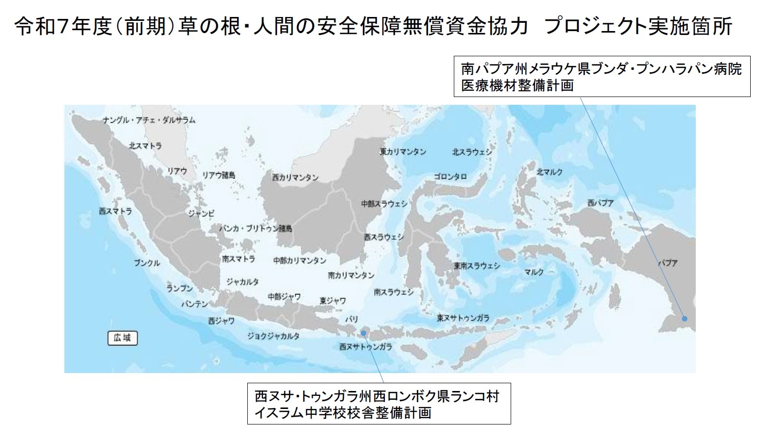 本日署名された案件に関する情報は、別紙のとおりです。これらの案件は、当館に対して申請された草の根・人間の安全保障無償資金協力候補案件の中から、審査を経て令和7年度前期案件として実施することが決定された案件です。